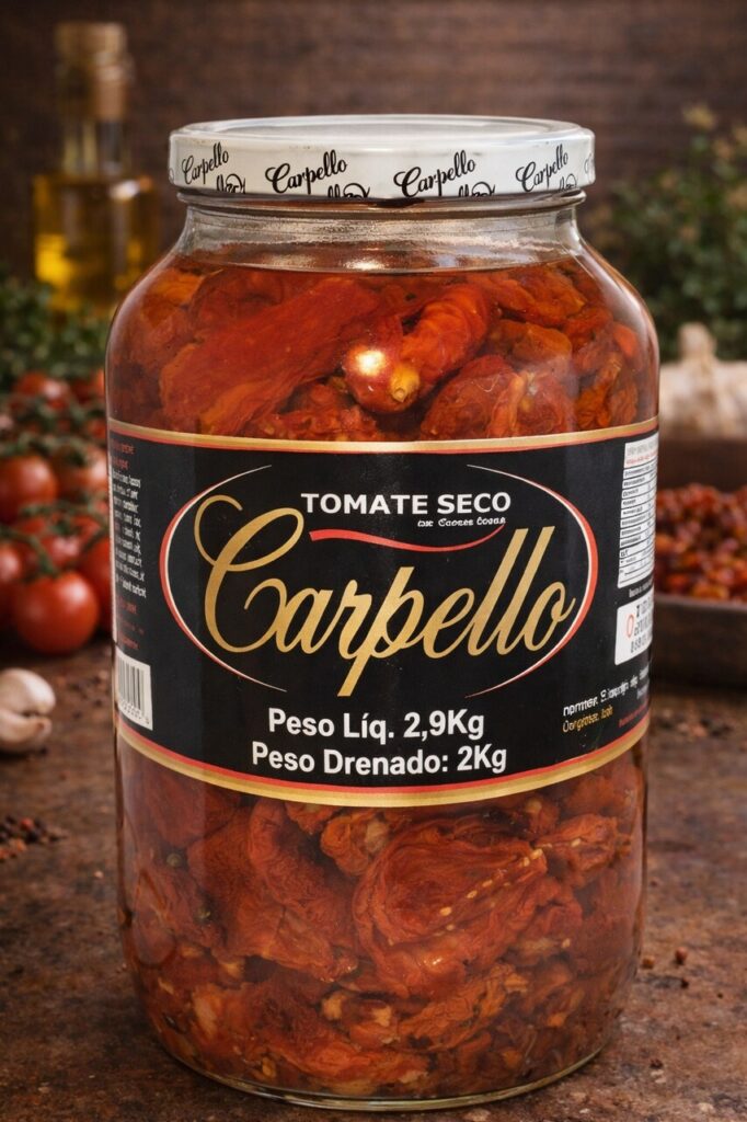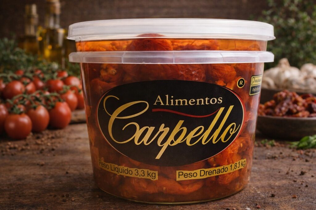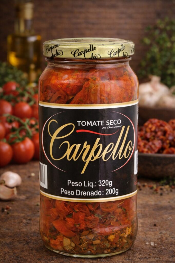 A linha de tomates da Carpello Alimentos é desenvolvida com ingredientes selecionados e preparo cuidadoso, garantindo cor intensa, sabor equilibrado e textura ideal.